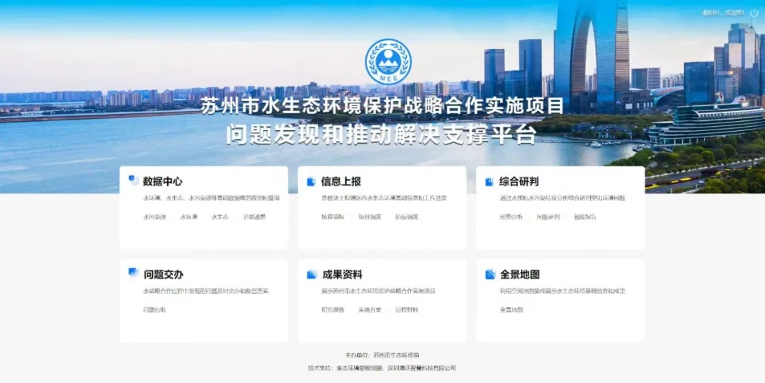 2022年开始,苏州市生态环境局依托与生态环境部环境规划院水战略合作项目,联合十余家顶尖科研院所建设了《问题发现和推动解决支撑平台》,以数字化赋能生态环境治理。平台由数据中心、问题发现、问题交办三个模块组成,打造数据分析的智慧大脑,精准推动水生态环境问题解决。