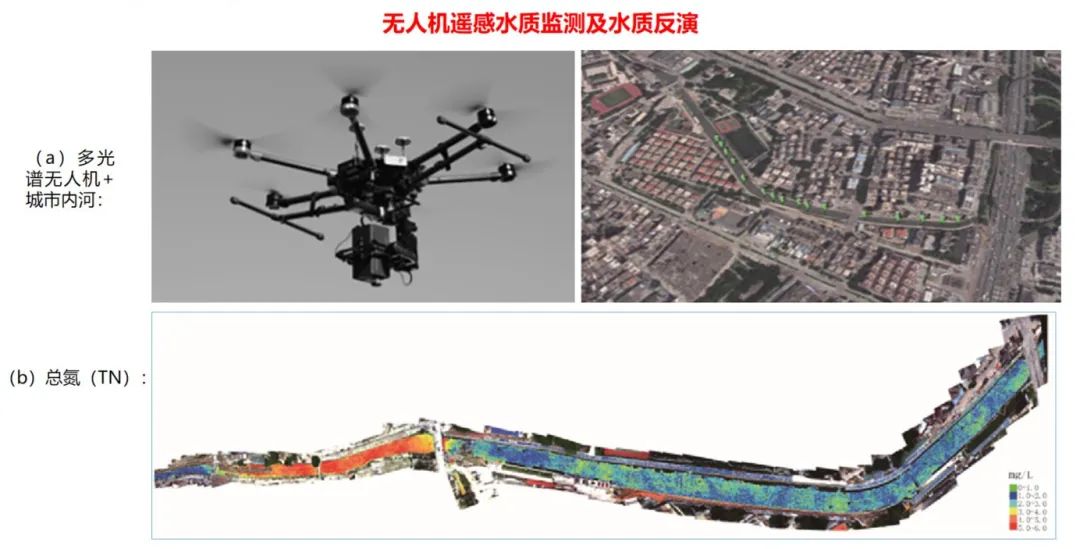 无人机虽然有效范围相较于卫星非常有限,但光谱丰富,弥补了高空卫星光谱波段少的缺点,能够较准确估算水体中总磷、总氮、叶绿素a、悬浮物含量,并获取水质参数高值区域,达到水质监测的目的。