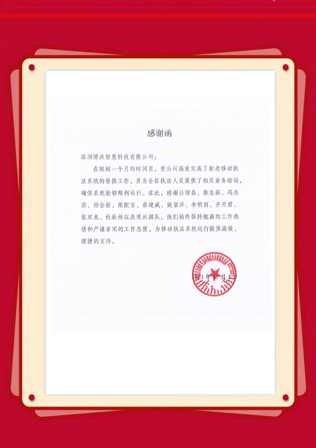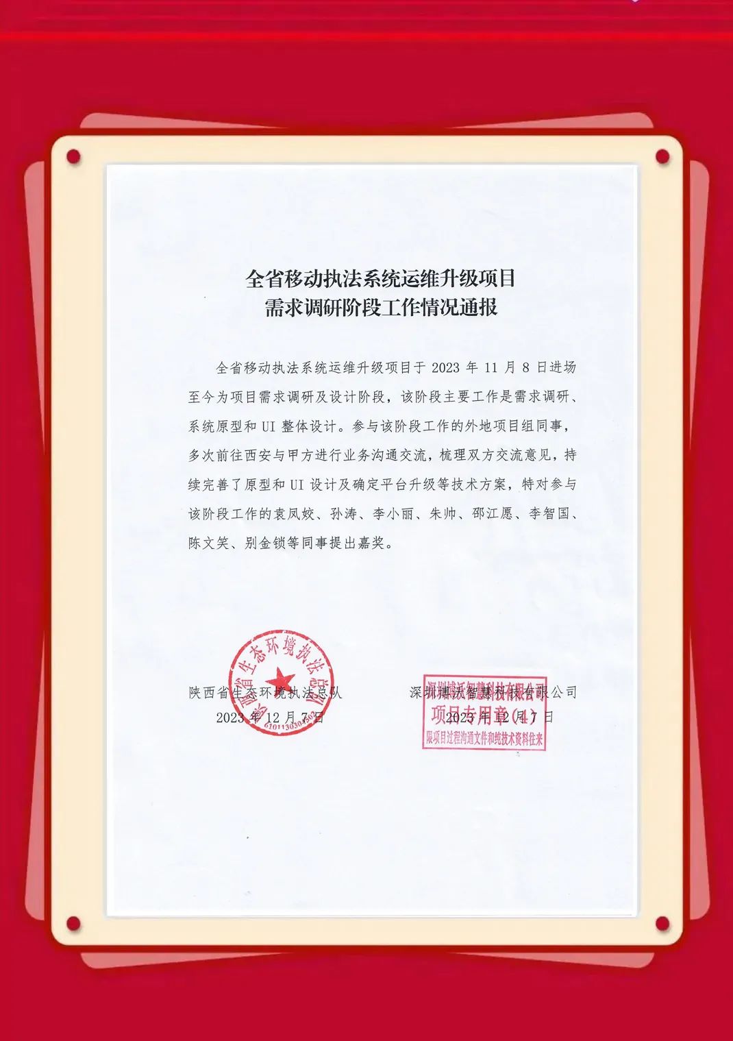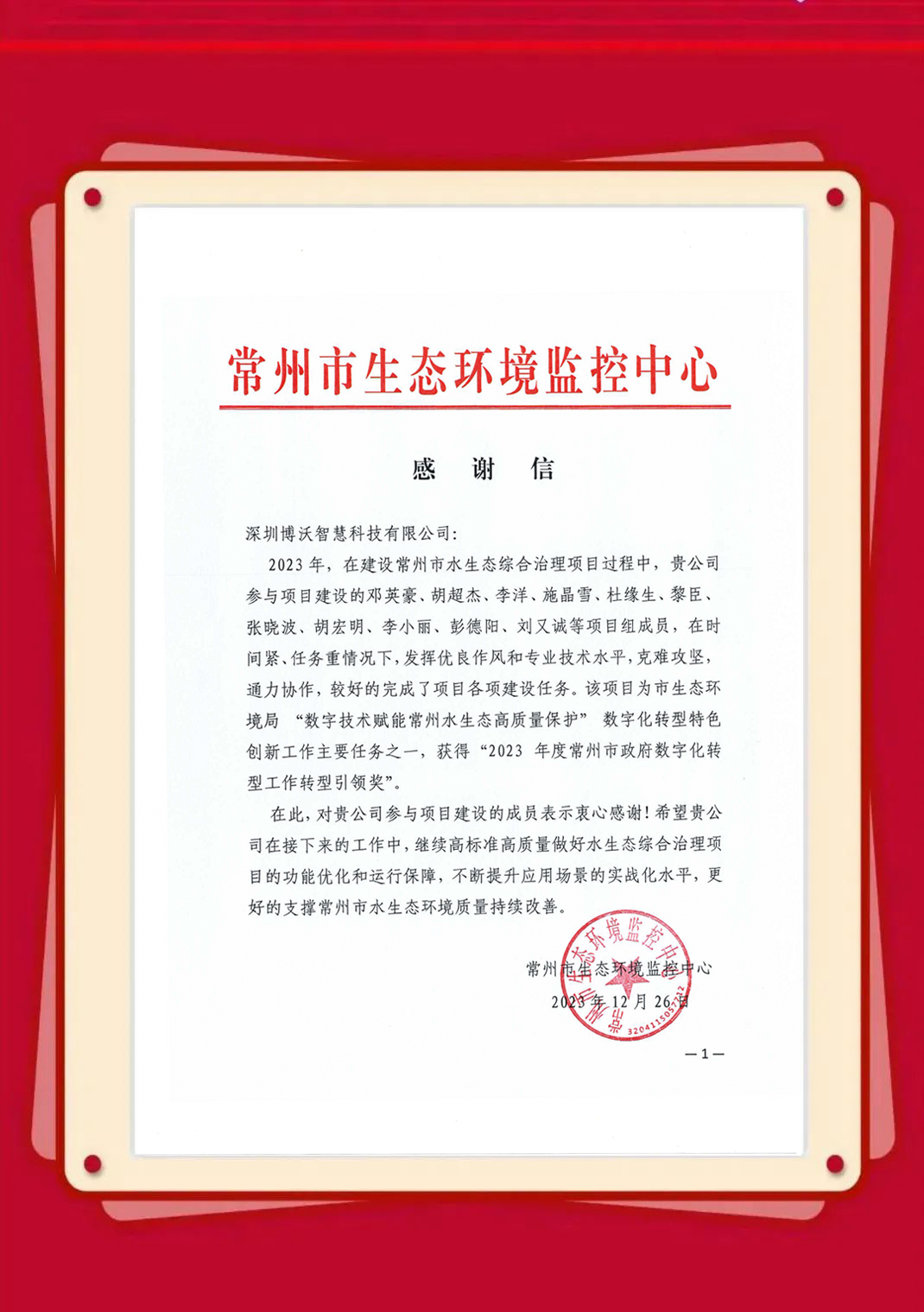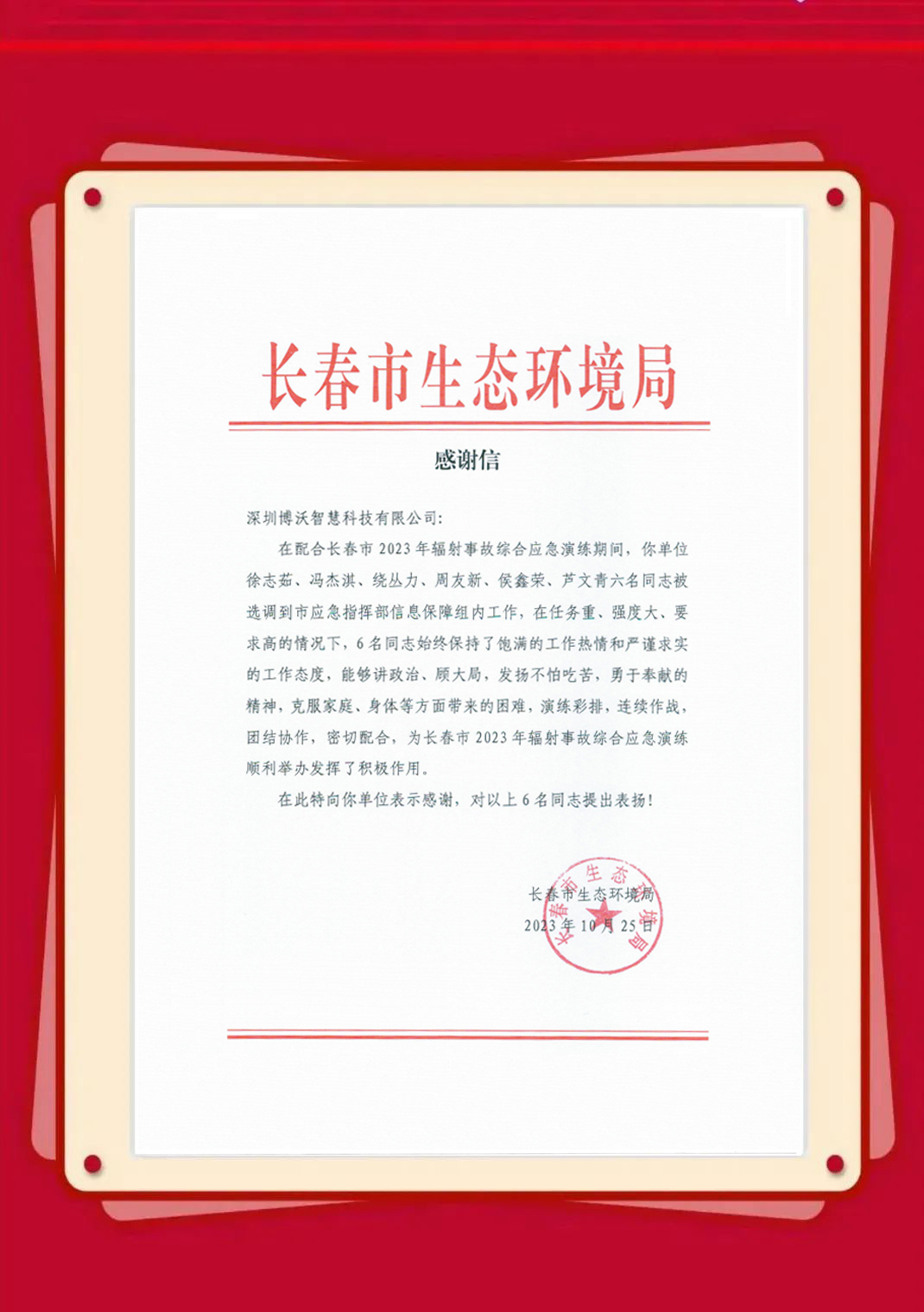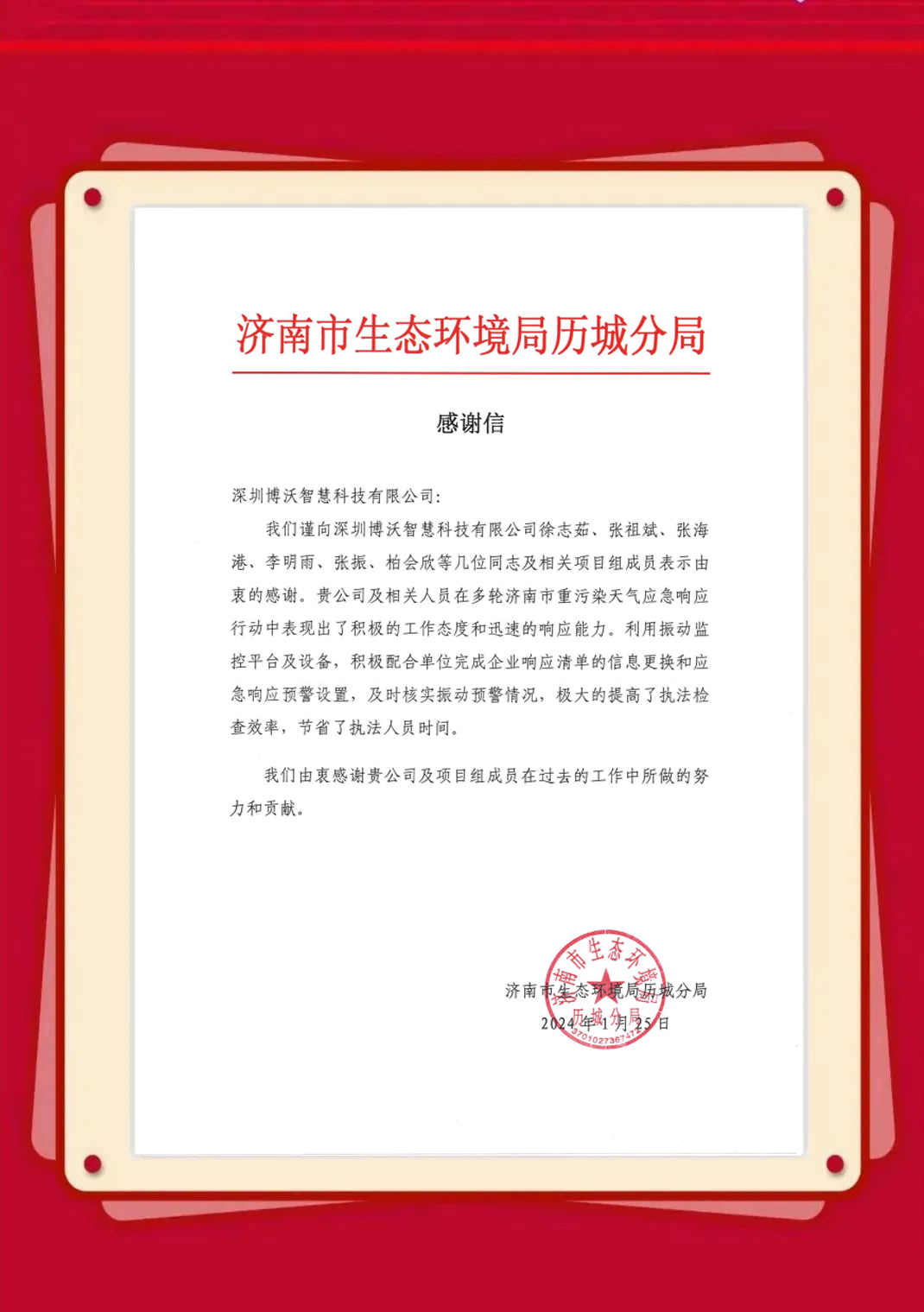 近日,博沃陆续收到生态环境部信息中心、云南省生态环境信息中心、湖北省生态环境监测中心站、陕西省生态环境执法总队、衢州市生态环境局、淄博市生态环境局、湖州市生态环境局等发来的感谢信,表彰博沃智慧员工在2023年的项目服务工作中,高质量高标准完成各项任务并获得客户认可。博沃智慧将肩负这份荣誉,持续努力,勇往直前,为打造更优、更美的生态环境贡献自己的力量。