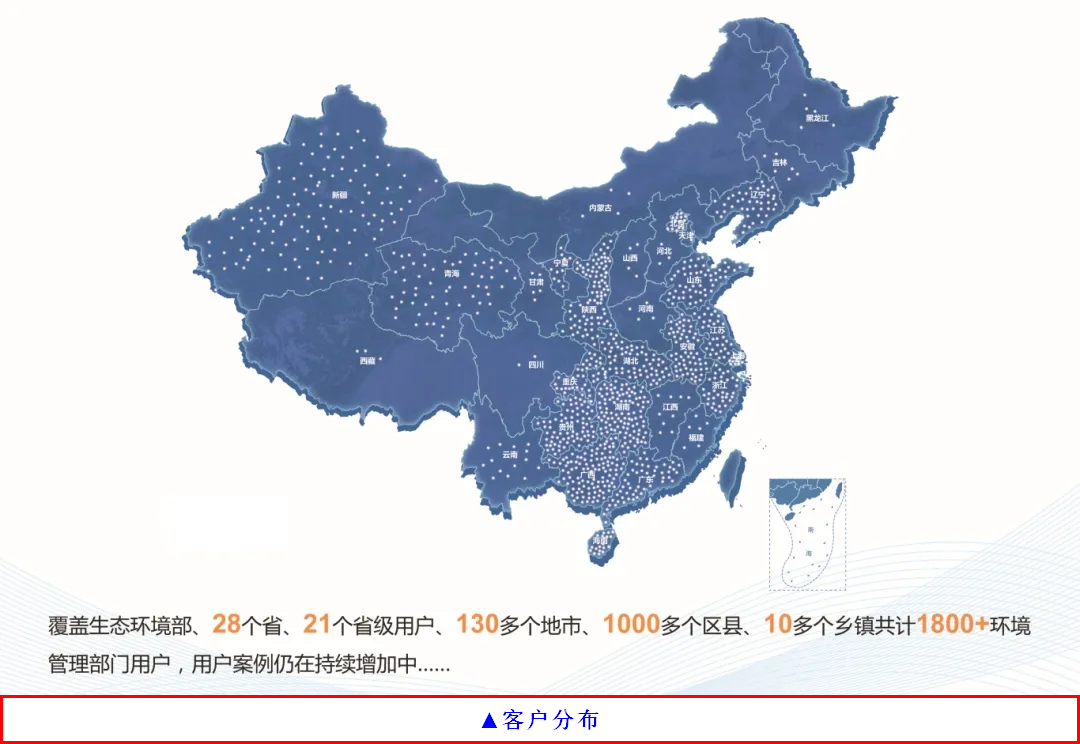 博沃智慧全国区域客户覆盖面广、产品在环境信息化领域市场占有率高,客户覆盖生态环境部、省、地市(区县),其中部级案例覆盖10余个司局、省级案例覆盖21个省级环境厅、地市(区县)级案例覆盖200+地市、1000+区县,共计1800+环境管理部门用户。项目案例涵盖生态环境数据中心、生态大脑等基础能力建设,“气、水(海洋)、土、废、生态、碳”等生态环境要素管理,以及“综合办公、环境监测、环评审批、智能执法、督查帮扶、企业服务”等全业务链条。