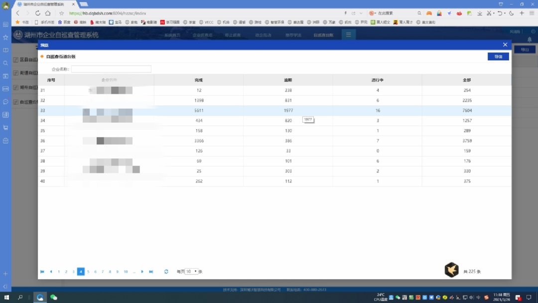 目前,湖州市已纳入自巡查管理企业606家,涉及污染物处理设施排口1371处、危废仓库422处、一般固废仓库401处、应急池285处、应急阀门220处,派发并完成自巡查任务149333件,有效督促企业自查自改环境问题,同时在环境矛盾化解、服务企业发展、违法行为发现等方面发挥了较大作用。2021年企业自巡查系统将拓点扩面,继续开发新功能,进一步强化环境数据分析运用,不断推动生态环境问题发现能力提升、监管手段迭代更新。