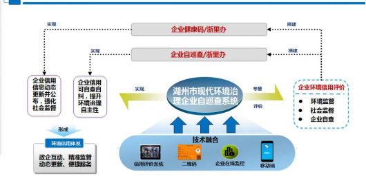 湖州市通过数据融合建成企业环保“自巡查”系统,将全市排污许可发证企业全部纳入“自巡查”管理,结合排污许可证要求,对企业排污许可证到期延续、环境管理台账上传、自行监测以及执行报告上传、企业治污设施运行等进行菜单式巡查任务指令,并进行预警提醒,目前已发送预警提醒2038次,并结合任务指令完成情况对企业进行“三色”赋码,督促企业落实环保主体责任,推动差异化执法监管,建立监管与服务并重的政企互动新模式。